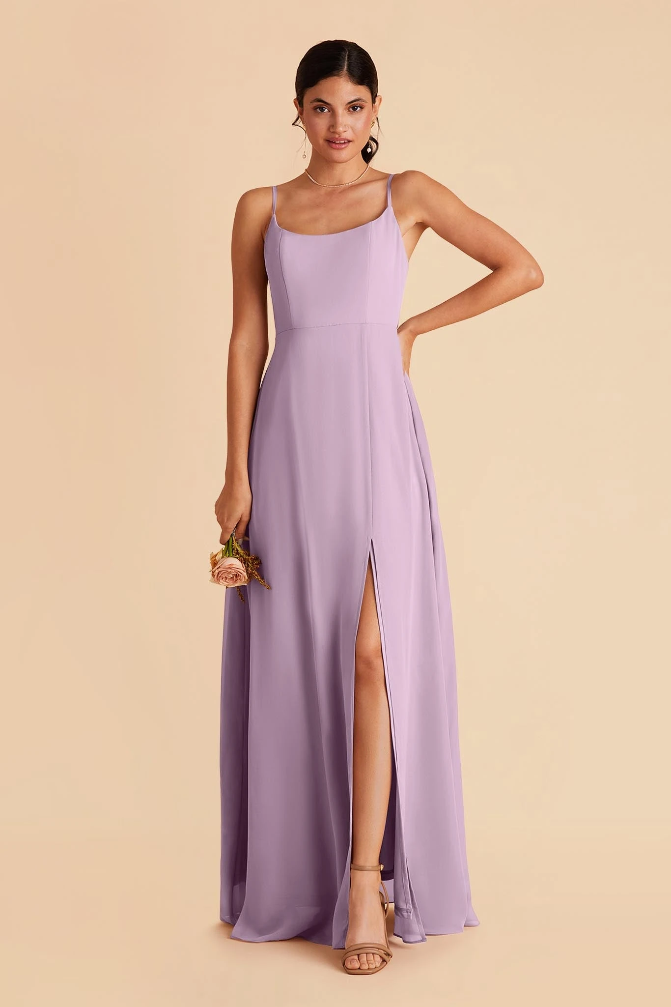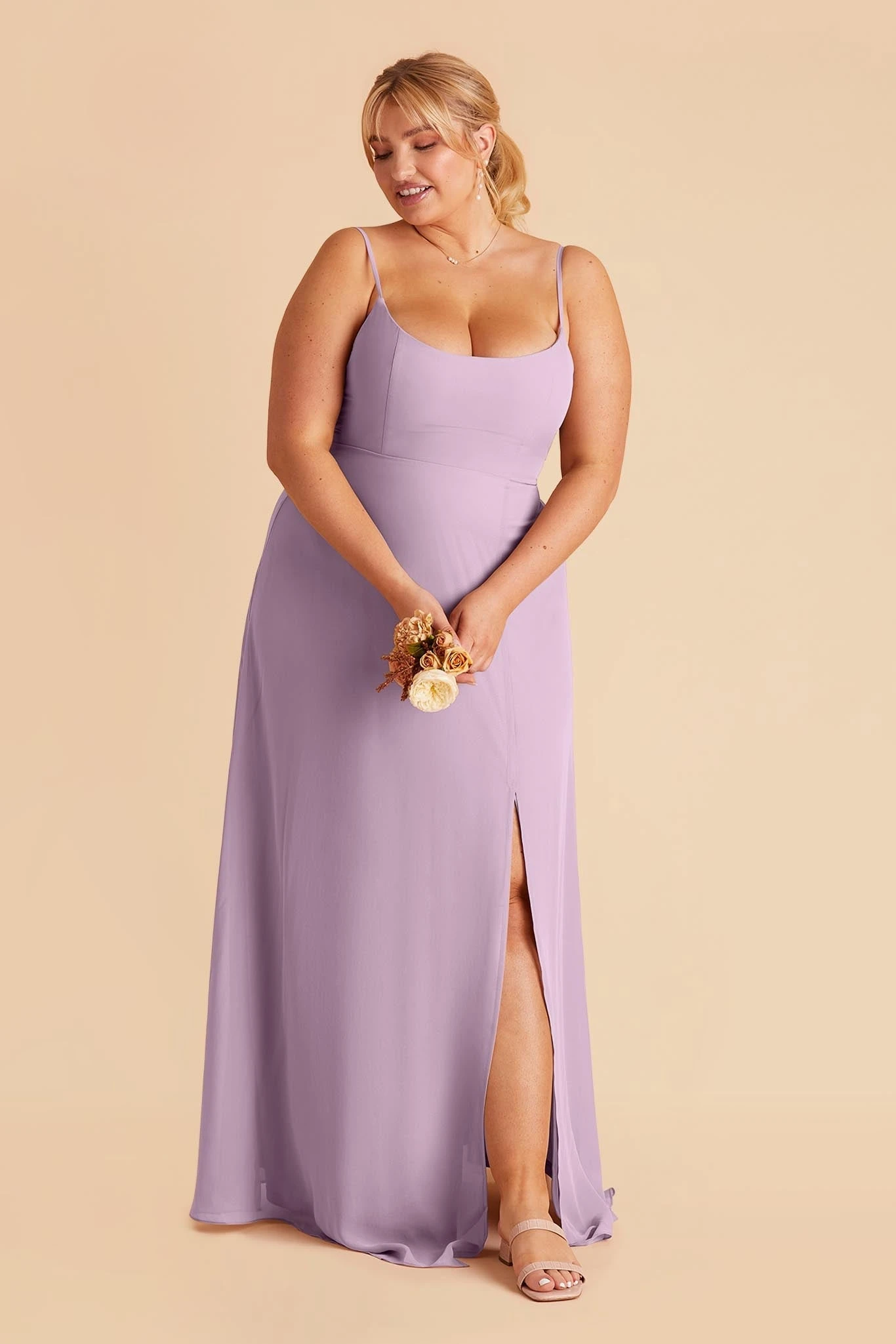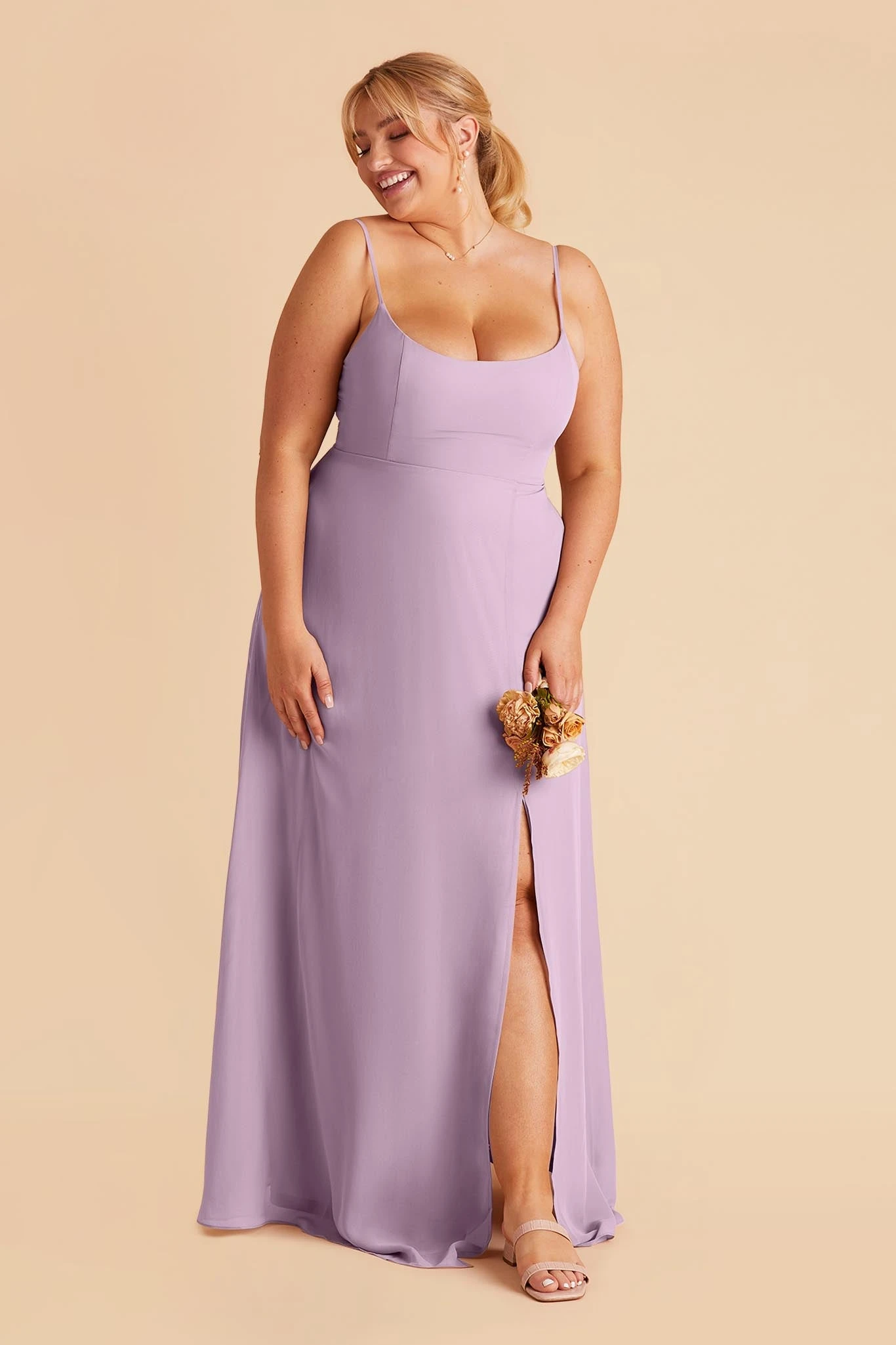 Amy features a wide scoop-neck design with dainty spaghetti straps. This dress also has our updated, slimmer skirt design, perfect for the no-fuss bridesmaid looking for a more modern touch. This versatile silhouette is perfect for any wedding, from a black-tie ceremony to a laid-back beach celebration.