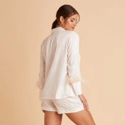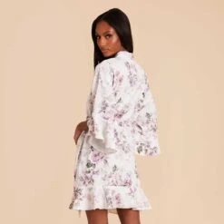 Gift the girls something cute to wear while getting ready for the wedding with these silky blush pink bridesmaid robes featuring lace trim detail.