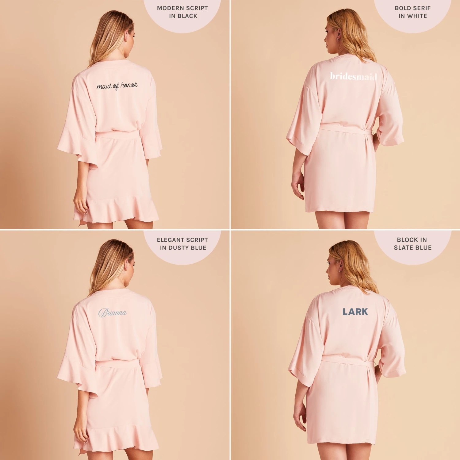 Not into lacy robes for your bridal suite look? We get it, some of us prefer simple and classic. These no-frills robes are incredibly soft and will make your girls look oh-so polished while getting dolled up and come in so many colors to match your I-do day palette. We love the 3/4 kimono sleeves that feel modern, but it’s really the simplicity of these robes that makes them a no-brainer for post-wedding wear. I mean, don’t we all aspire to be one of those girls that casually throws on a robe every morning and looks instantly chic?