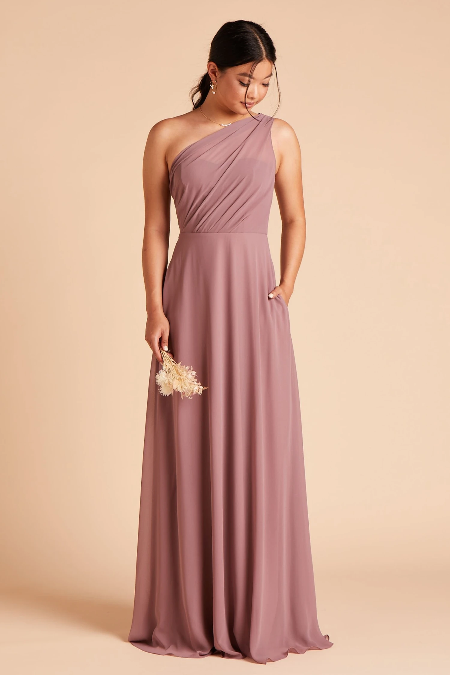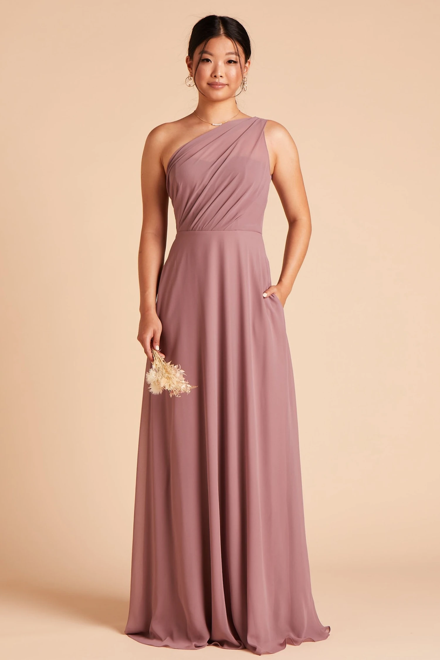 Like you, our Kira bridesmaid dress embodies classic beauty (*kiss*). This flowing chiffon bridesmaid dress is a style staple and no-brainer, if you’re looking to feel like a statuesque Greek goddess. The lightly pulled one shoulder and softly draped back are at once simple and regal, so you can float down the aisle in all your Aphrodite vibes. This dress features built-in bra cups, a flowing skirt, and a hidden side pocket, so you can be prepared with a detergent pen or a safety pin or a disposable camera to capture a precious moment.