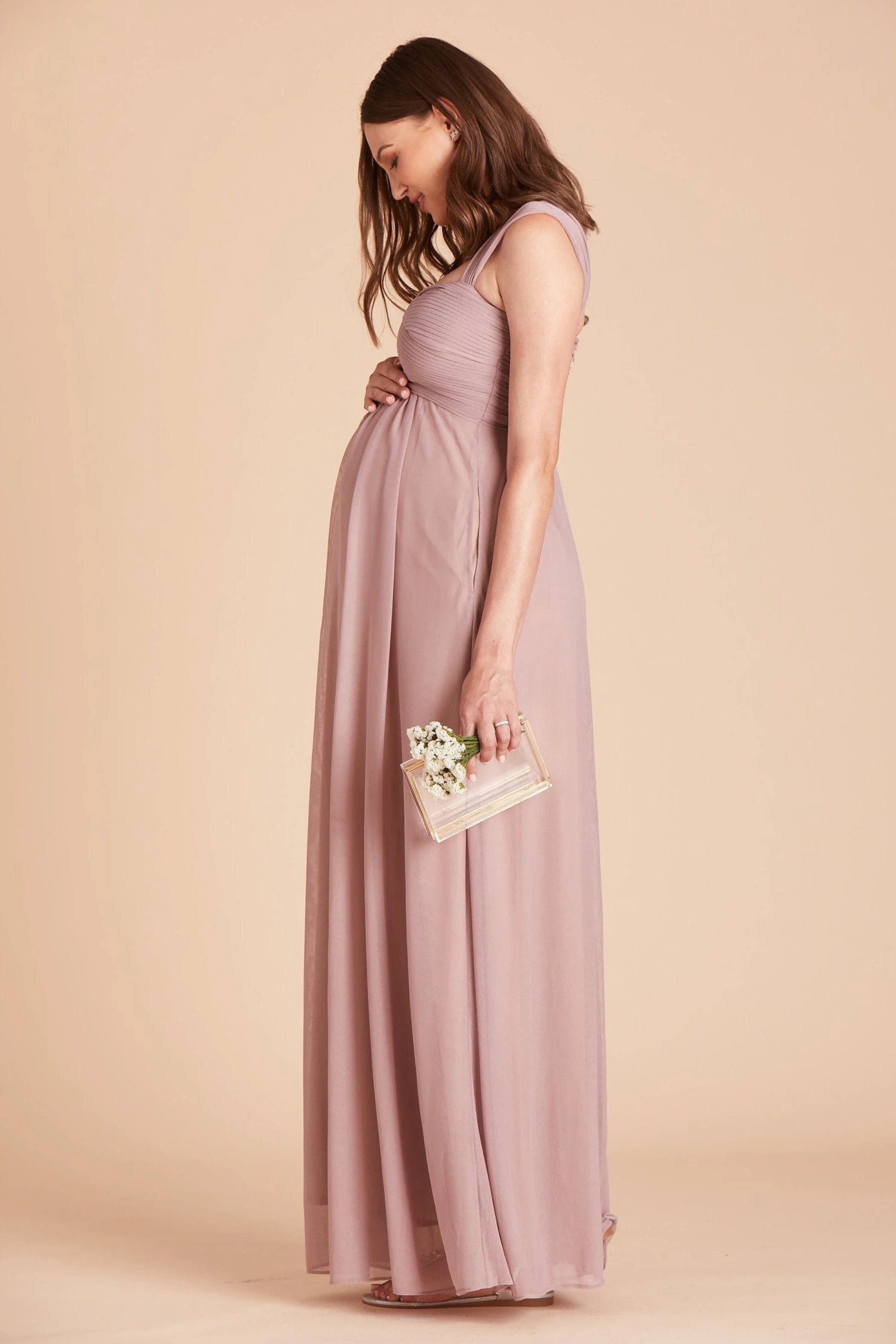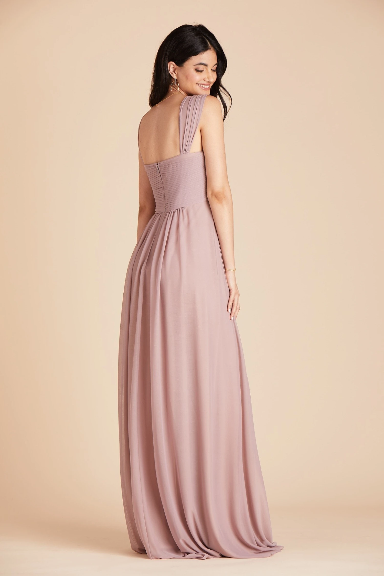 It’s all about the convertible straps here! This empire waist bridesmaid dress is spun of breathable mesh and comes with genius straps that you can wear in 3 different ways. Wear it with thick straps, which is our go-to, for a gorgeous portrait neckline, or bring the straps in together for a thinner look. Lastly, if you want more coverage for your arms, you can bring the sleeves down for flouncy flutter sleeves. It features a really special criss-cross pleating with built-in cups and thanks to its raised empire wasitline, it’s also baby bump-friendly (or you know, that extra slice of cake).