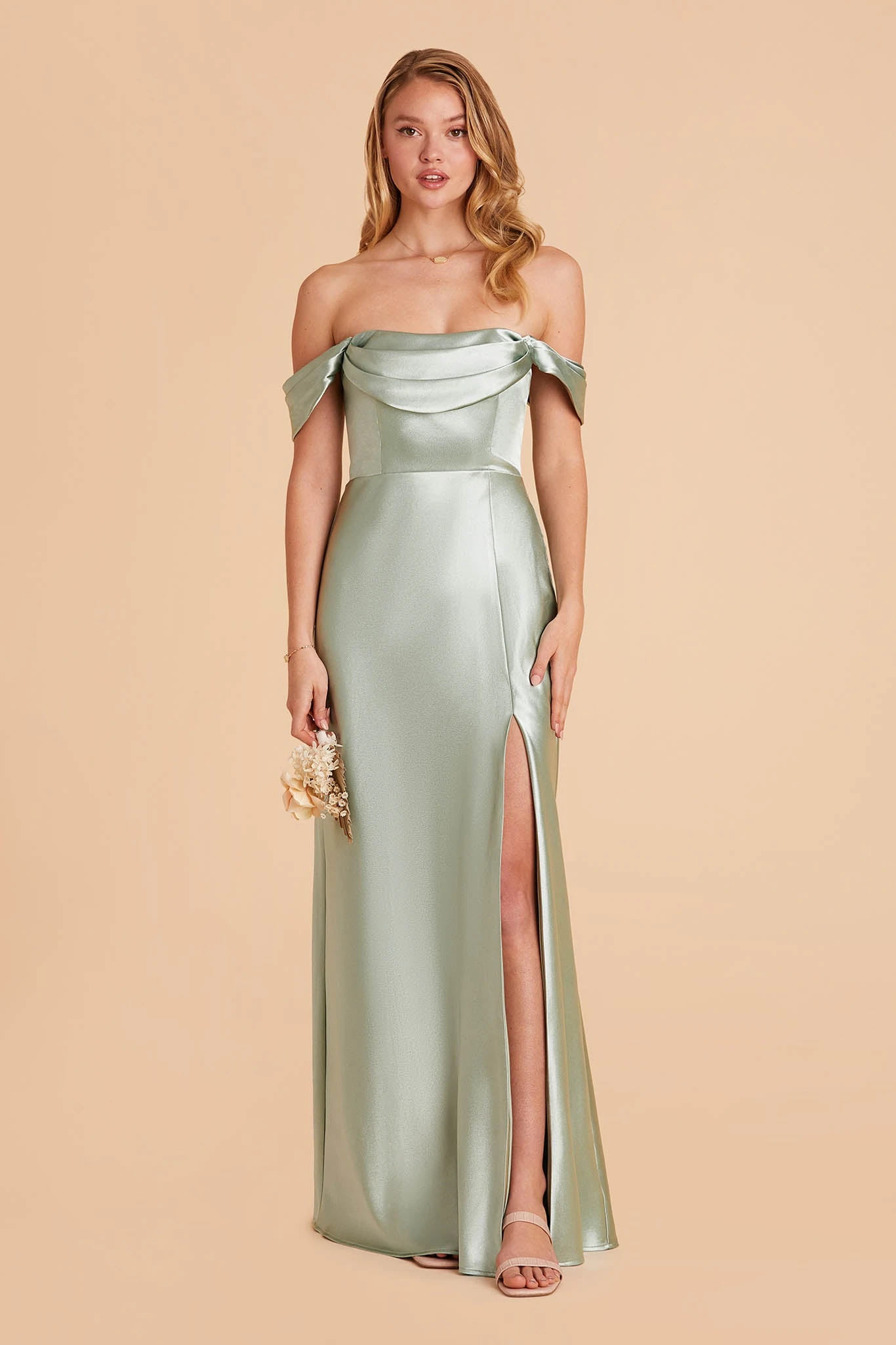 Mia Shiny Satin Convertible Dress – Sage