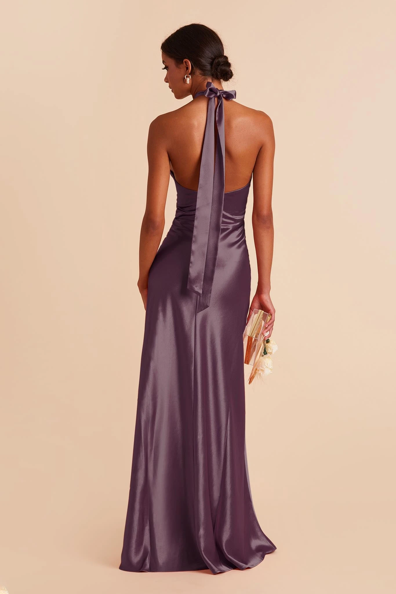 Your wedding will look like a star-studded event with your bridal party wearing this twist-front halter satin bridesmaid dress. The lustrous fabric of this floor-length gown makes each color look rich and regal while the halter style creates an alluring look that’s on par with an A-list Hollywood star. We love this bridesmaid dress paired with a low bun that softens the cool, modern style while showing off the neckline.