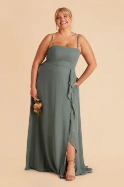 Lisa Shiny Satin Midi Dress – Sea Glass