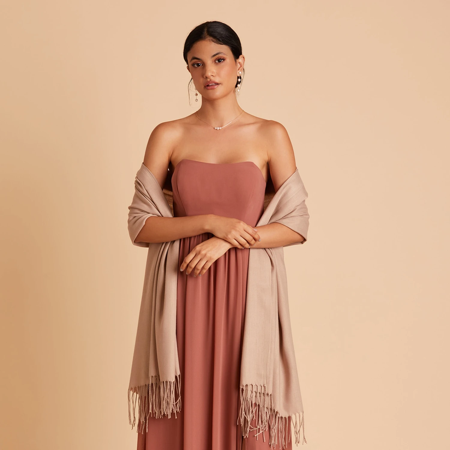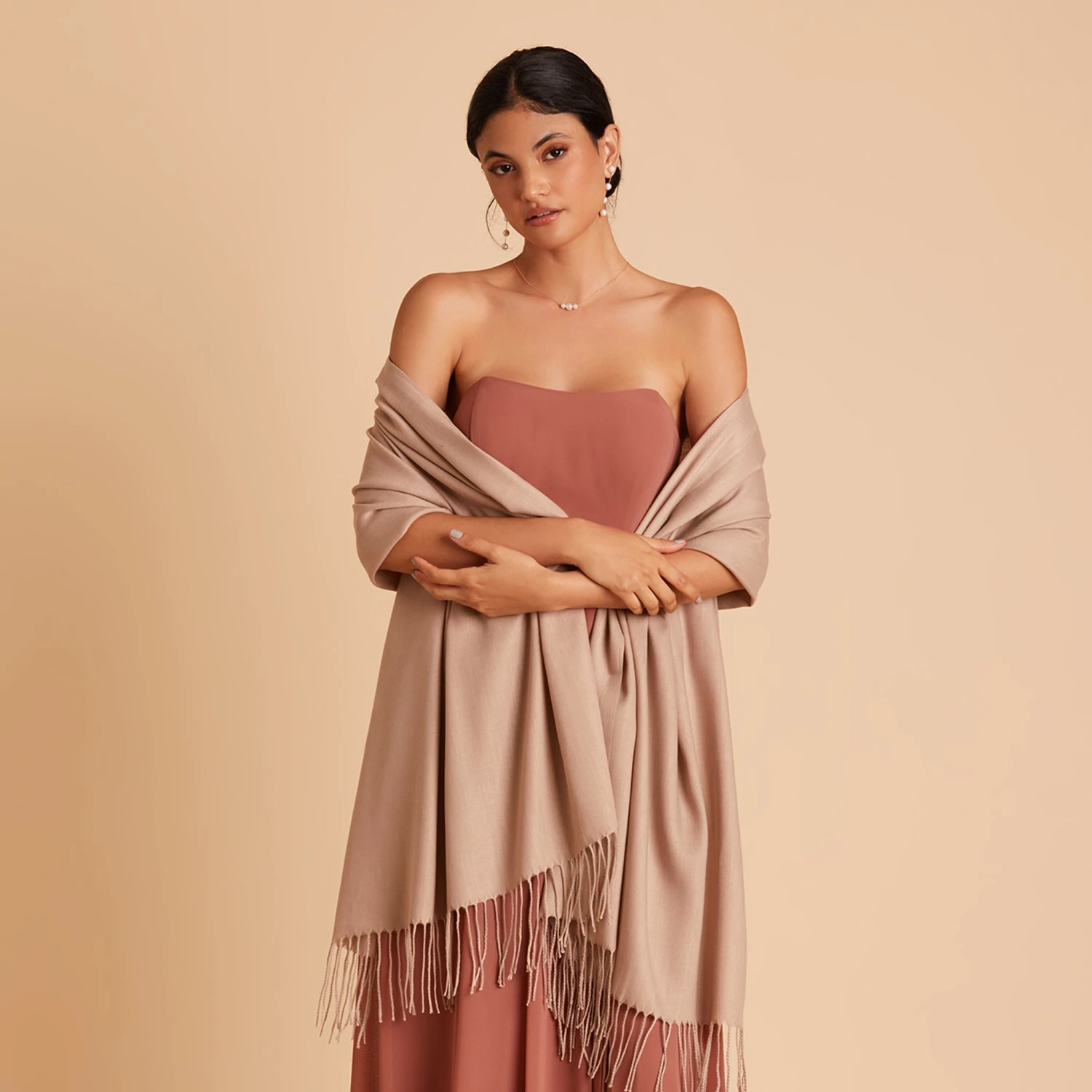 There will be no cold shoulders on your big day! Our fringe shawls have you covered — literally. The soft material will keep your bridesmaids or guests protected from the evening chill in style. And, with this versatile color selection, you can match nearly any outfit.