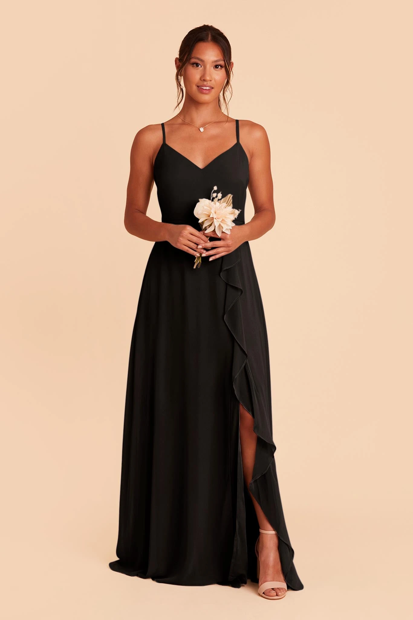 Timeless style, meet ultimate breathtaking details. We think you’ll be the perfect match. The downright class of this understated, super flattering bodice paired with a chiffon ruffle cascading down the leg slit gives a waterfall effect while you strut down that aisle. You still get all the side-slit sass, just elegantly softened with a feminine ruffle. Talk about the best of both worlds. Plus, the adjustable spaghetti straps with two ways to wear give you all the comfy options to make sure you’re dancefloor-ready all night long.